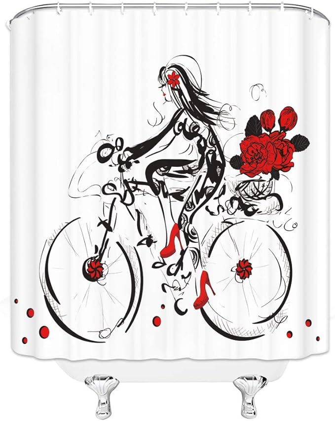 Amazon Com Qianliansheji Cartoon Girl Cycling Shower Curtain Red